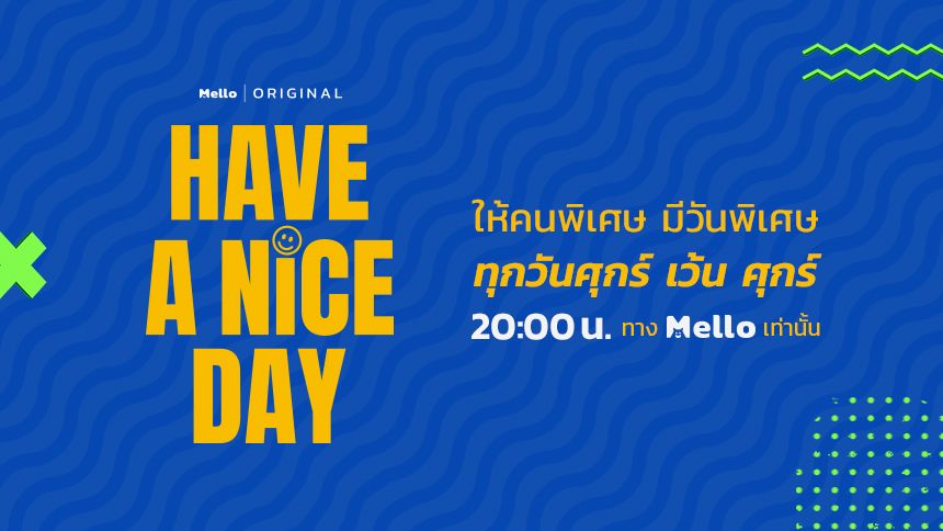 ช่วงเวลาแห่งความสุขของทุกคนกำลังจะเริ่มขึ้นอีกครั้ง กับ “HAVE A NICE DAY” จะฟินแค่ไหน เมื่อเหล่าซุปตาร์คนดัง มาเซอร์ไพรส์คนที่คุณรักแบบใกล้ชิด …สักครั้งในชีวิต เพื่อคนพิเศษของคุณ! ติดตามความสนุกได้ใน รายการ “HAVE A NICE DAY” ทุกวันศุกร์ เว้น ศุกร์ เริ่มตอนแรก ศุกร์ที่ 26 เมษายนนี้ เวลา 20.00 น. ทาง Mello.me และ แอปพลิเคชัน Mello Thailand
